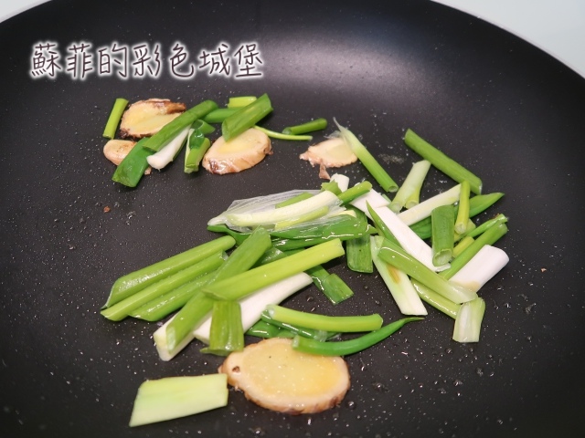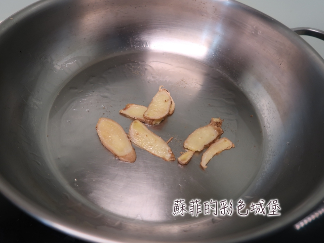 步驟3: 起一油鍋開小火,將薑片略為爆香一下。