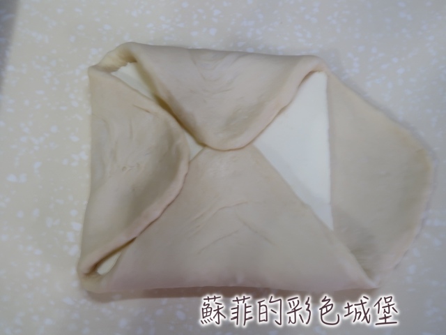 步驟7: 麵糰將夾餡奶油包起,邊角輕推黏緊,不要露出奶油餡,密封好後,再放入冰箱鬆弛約15分鐘。