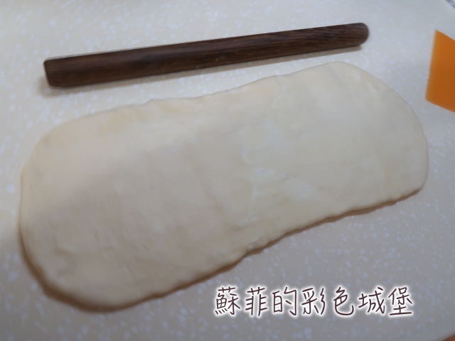 步驟8: 將鬆弛好的麵糰,快速桿成約50公分的長度。