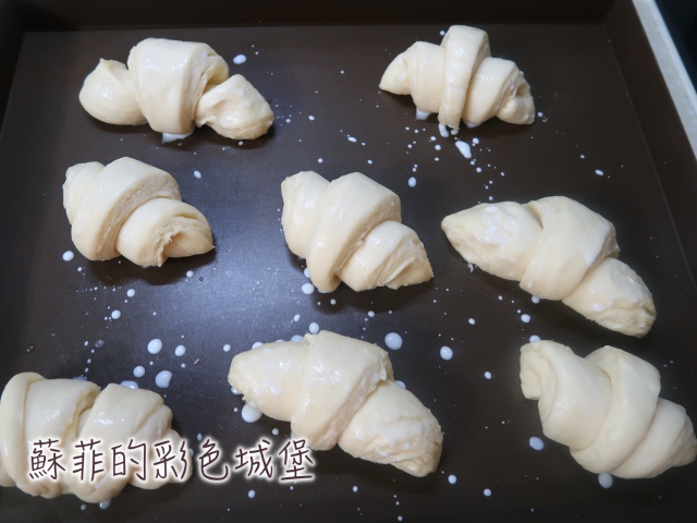 步驟15: 將發酵完成的麵糰(麵糰會大一倍),刷上一層鮮奶,放入預熱好的烤箱下層,上火下火各210度,烘烤時間約需20分鐘上下。(可依自家的烤箱進行調整溫度和時間)