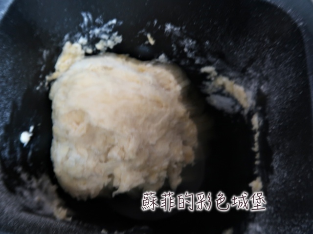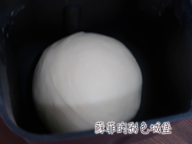 步驟2: 將麵糰整成圓形後,放回麵包機內,設定『發酵行程』,約需1.5個小時。麵糰中間用手指頭插入,不會回彈,就算是發酵完成。(這是冬天發酵的時間,夏天發酵時間約減少一半!)