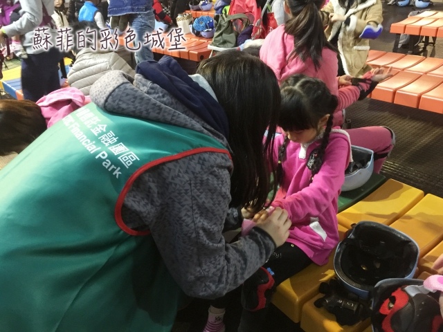 領完所有配備後,看到我一人在服務兩個已經迫不及待的小朋友穿戴設備,馬上就有兩個非常親切的大姊姊,來幫蘇菲穿戴配件,我就可以專心幫孟孟穿戴!是不是服務超級棒呀!!!這真的要按很多個讚!而且還可以跟兩個聒噪的小朋友一起聊天....這一定是有訓練過的啦!