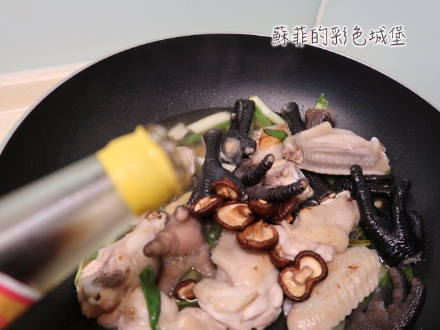 因為加入了雞腳一起燉煮,也同時滷出了滿滿的膠質呢!燉好的雞肉和雞腳,相當的軟嫩,味道也不死鹹,單吃就非常好吃,連鍋裡的香菇、蔥段和薑片,味道都相當的棒,光是單吃就非常的唰嘴喔!