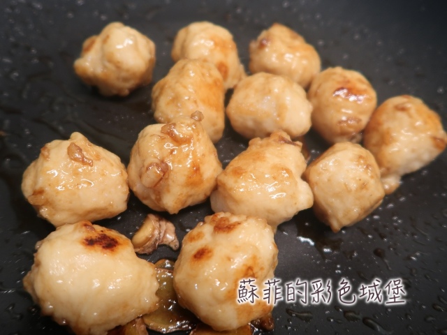 湯汁已略為收乾,且緊緊巴著花枝丸!