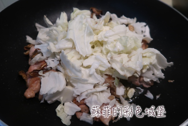 步驟5: 加入洗淨的高麗菜翻炒。