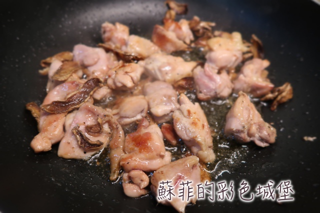 小火煎到雞肉兩面呈現金黃色。